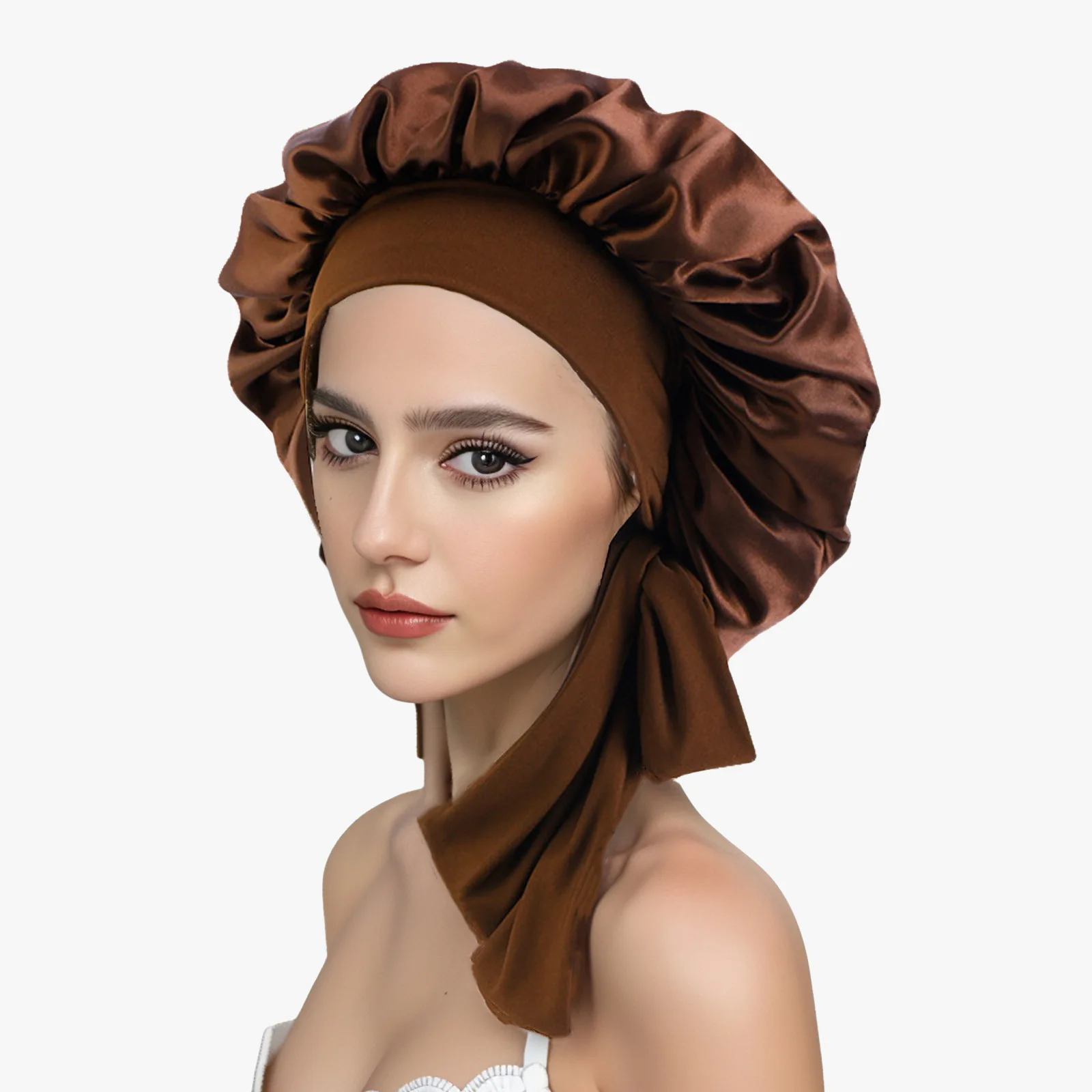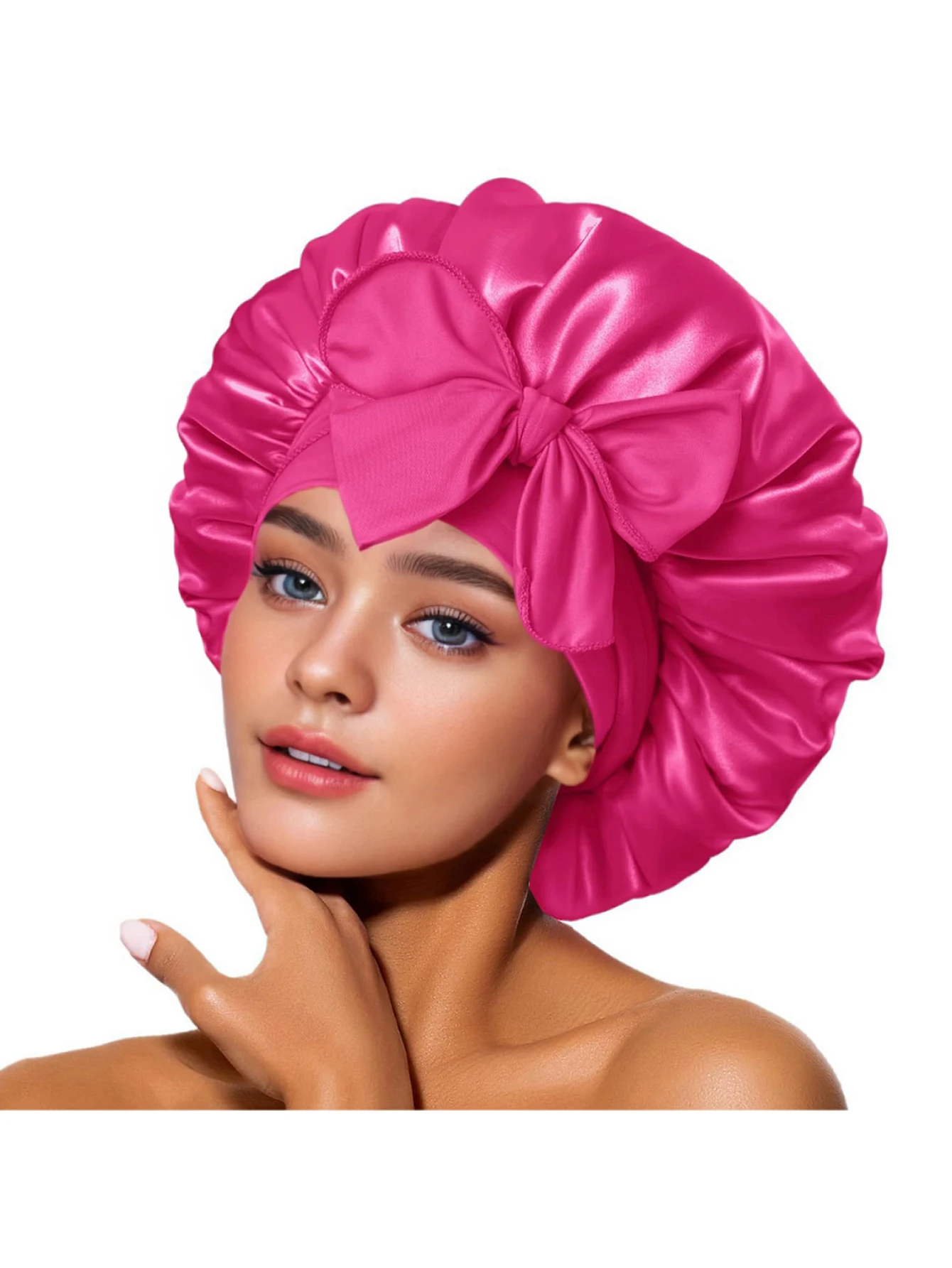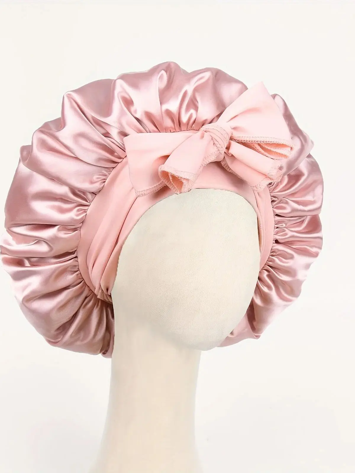 1 luxurious pink satin hat with adjustable straps and bow accents - soft hair protection for both women and men, comfortable ruf